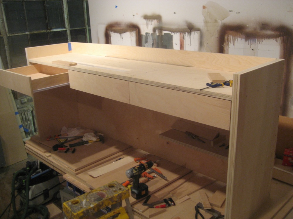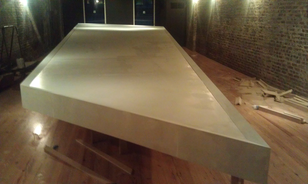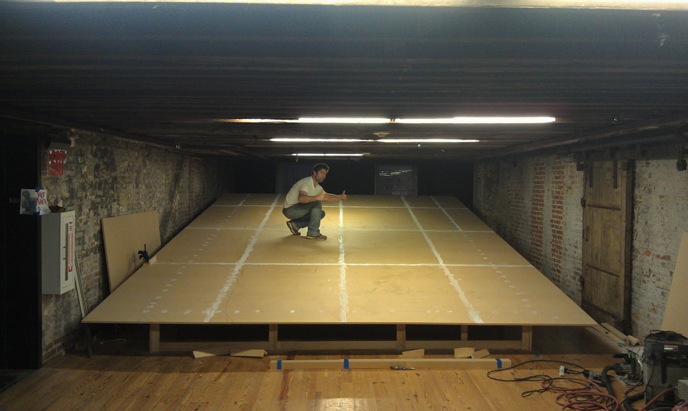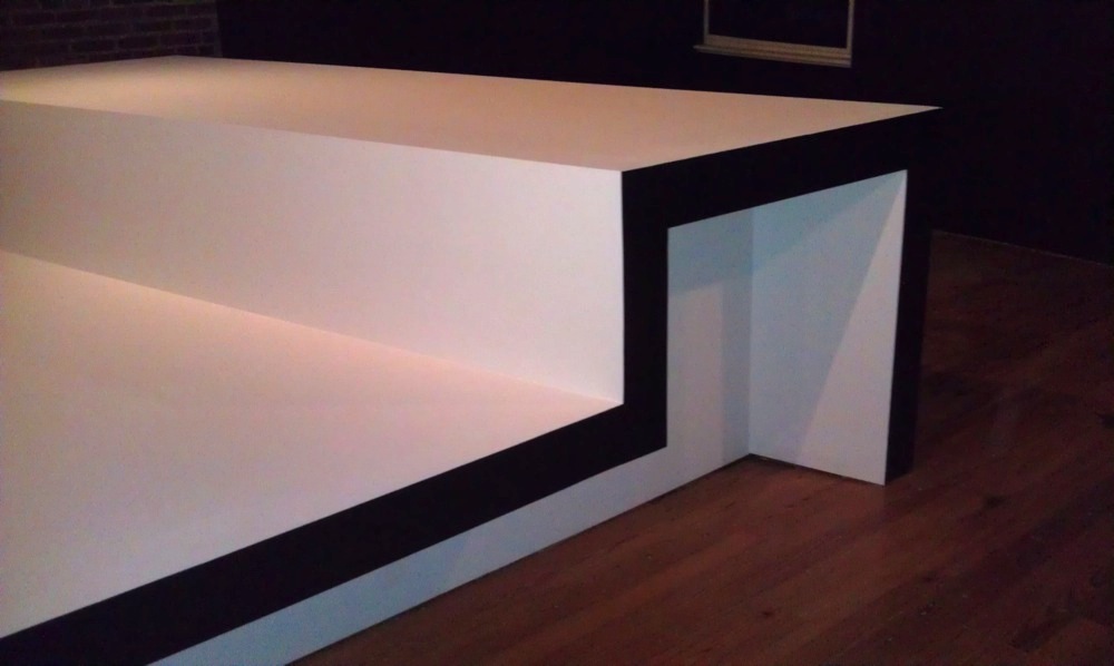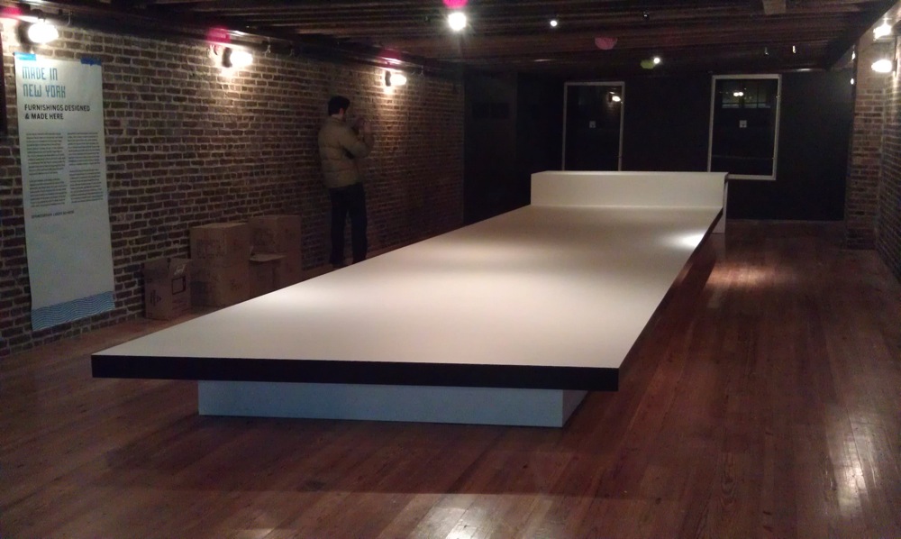 There were a number of display platforms built for various galleries. The Museum was located in a historic building with a pitch of 18″ from one side of the room to the other. All casework was built level.