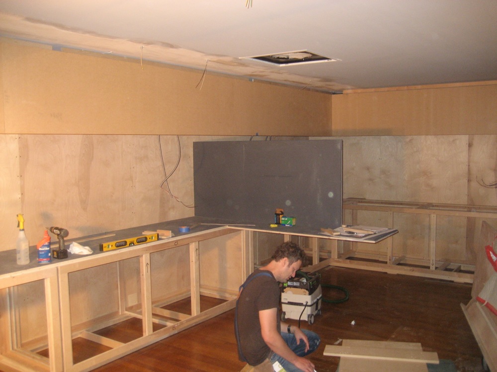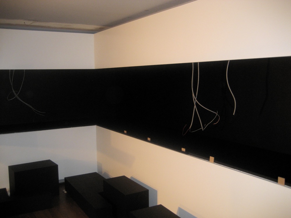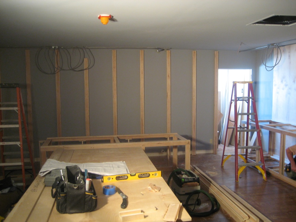 This gallery was in the oldest part of the building. We had to build a square and plum room within a room to hang the casework. This was done via a proprietary telescoping stud system.