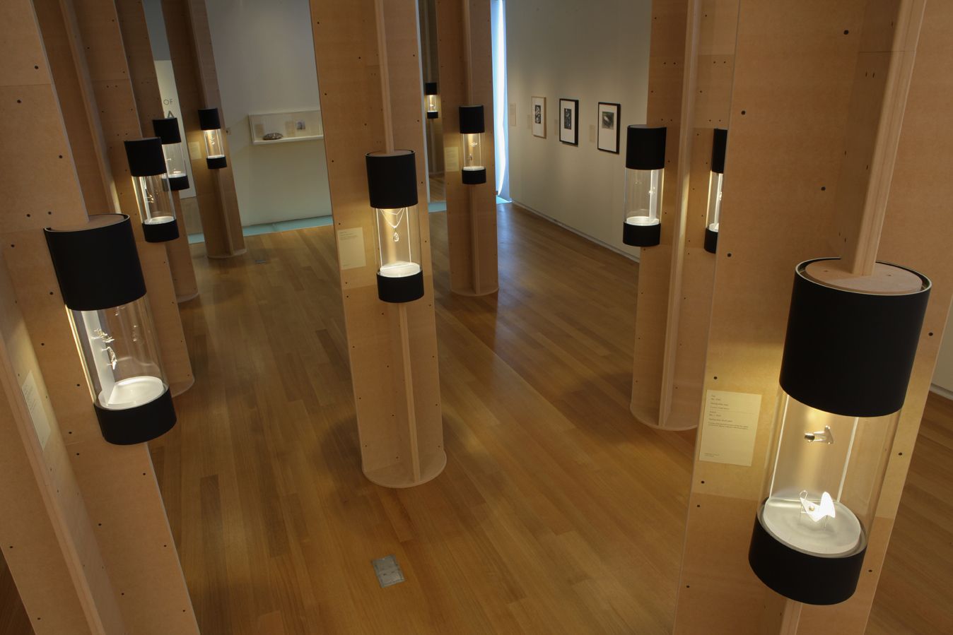The DePatta jewelry examples in this exhibit were displayed in column cases that afforded the viewer an intimate moment with each piece. Rupert referred to the cases as trees in the forest.