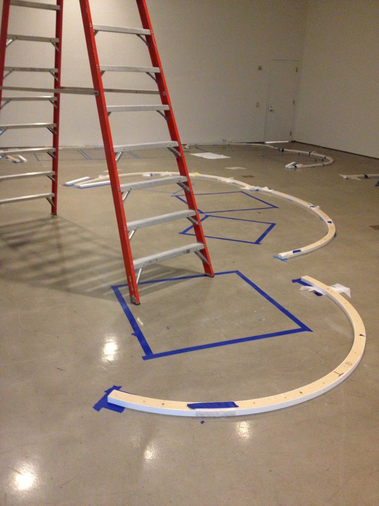 Placement of curves before they are bobbed to the ceiling hanging points
