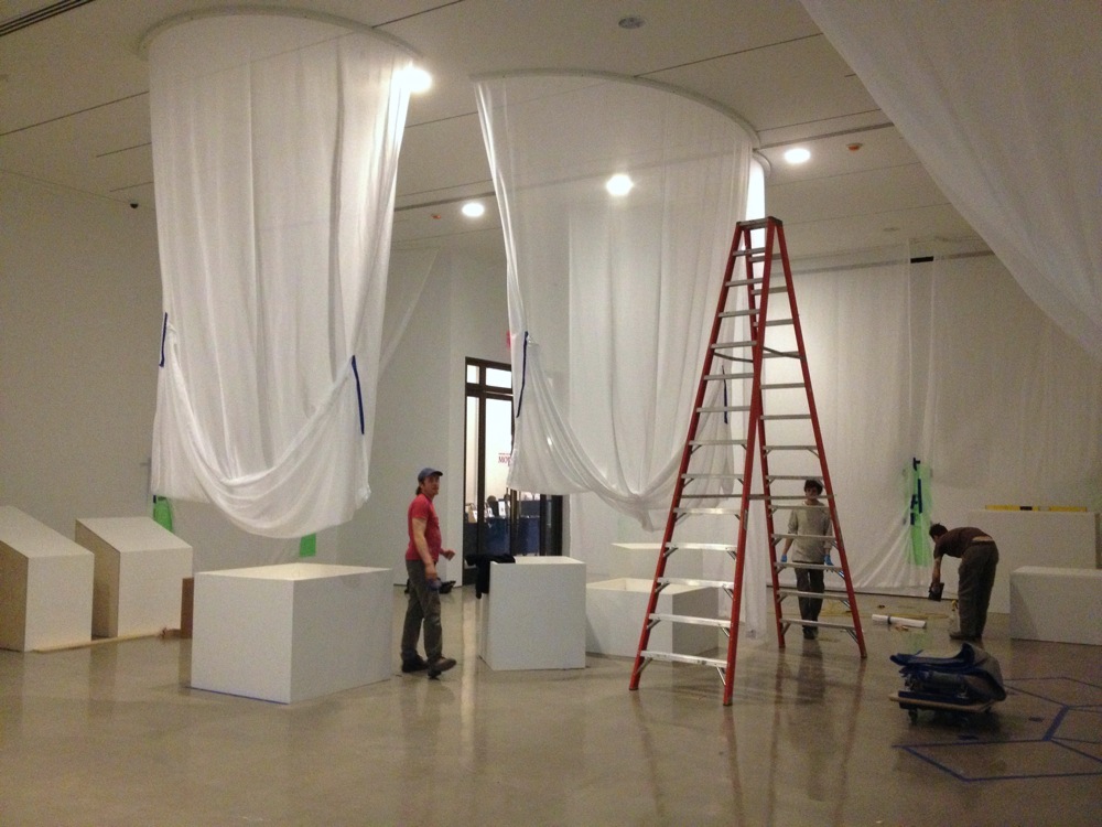 Another major Exhibit component was the scrims, some 32 feet wide, all 16 feet + tall, that hung from MDF curves.